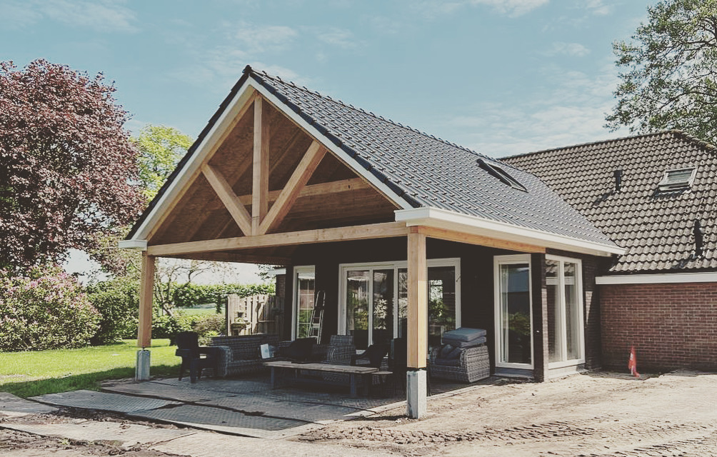 Hierboven is een uitbouw te zien met puntdak. Van a tot z kunnen we de volledige verbouwing voor u verzorgen.