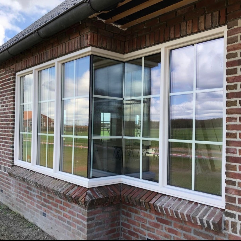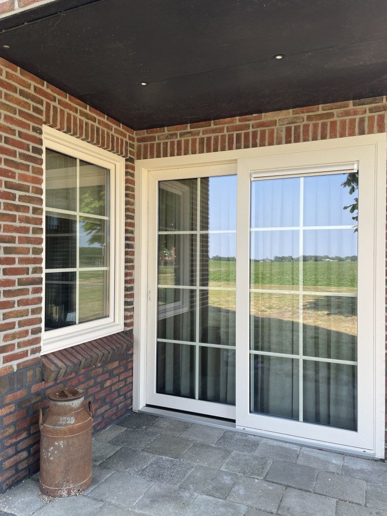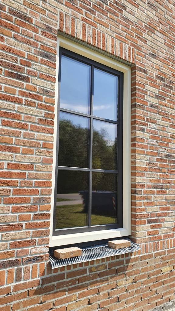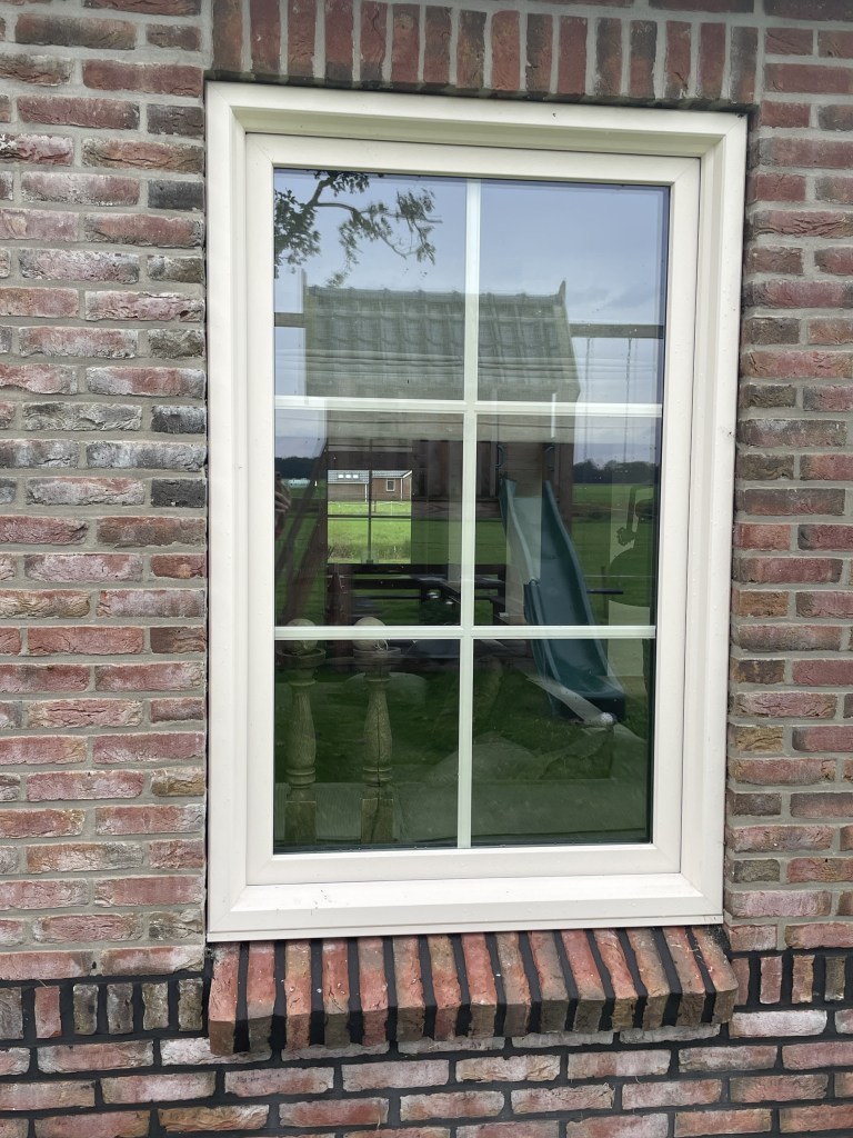 KOZIJNEN CREME MET TRIPLE GLAS EN ROEDES IN HET GLAS